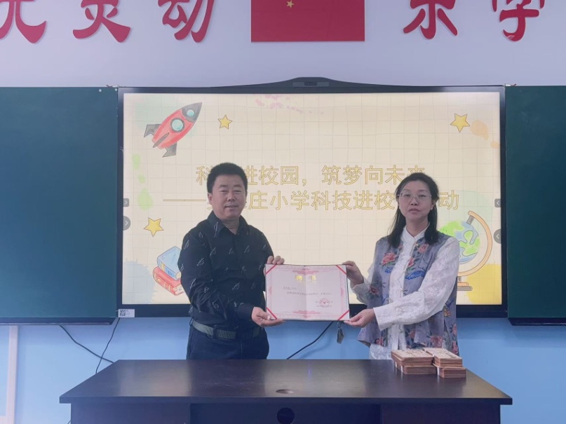 2025年9月26日上午,吴家庄小学在学校会议室举行仪式,聘请学前教育系李青松老师兼任吴家庄小学科技副校长,吴家庄小学李中一校长致词并颁发了荣誉聘书。